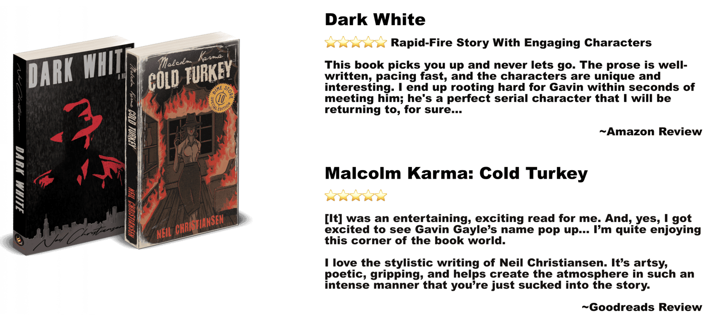 A Chicago-based indie author of dark, atmospheric thrillers, including Dark White and Malcolm Karma: Cold Turkey. Known for weaving hardboiled grit with psychological tension, Neil builds interconnected noir worlds where everyone has a secret. In addition to writing, he’s a regular voice on “WriterTok” (TikTok’s writing community) and hosts the ongoing YouTube series I’m Reading House of Leaves So You Don’t Have To.